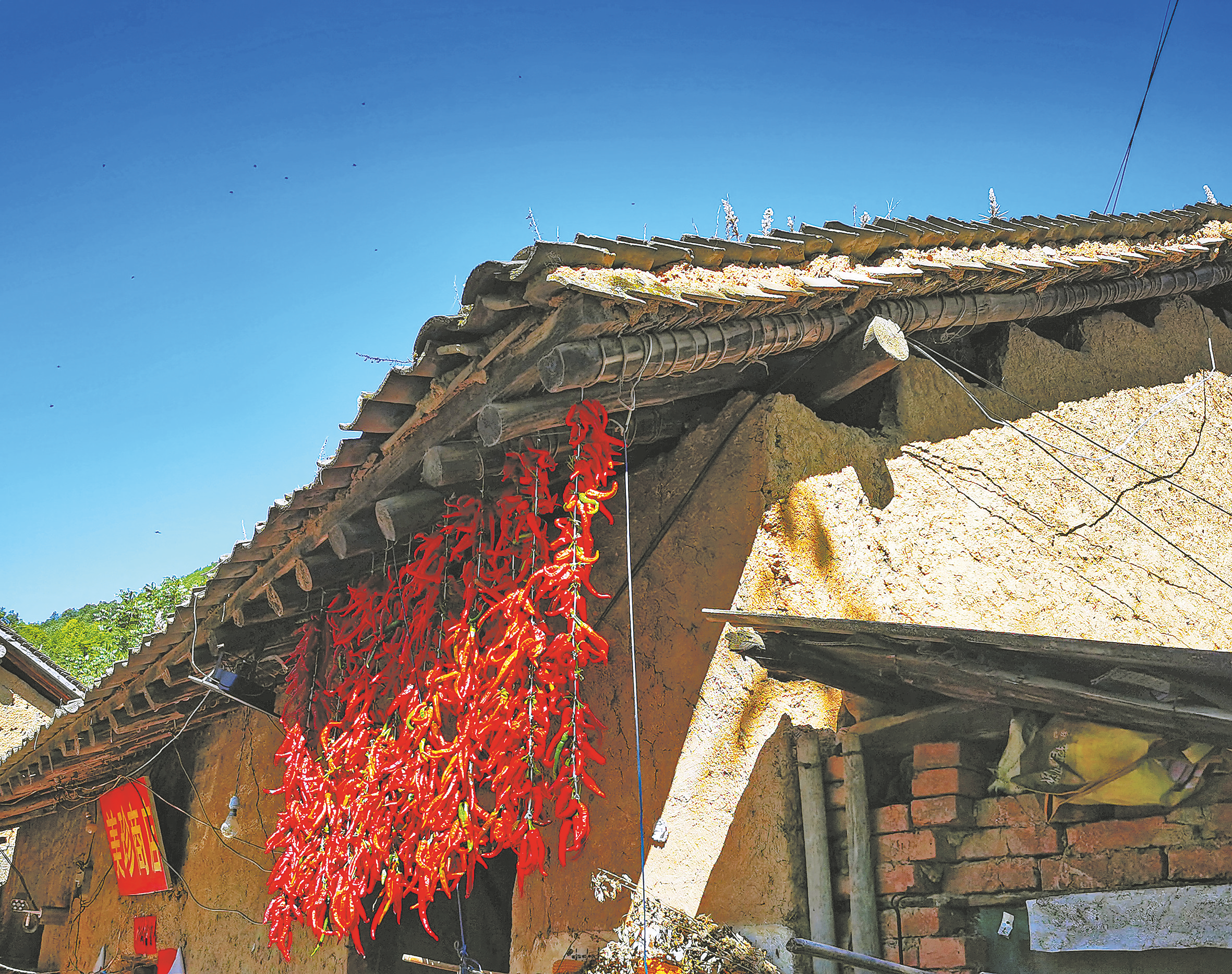 鮮紅的辣椒點(diǎn)綴著農(nóng)家小院