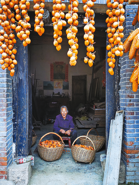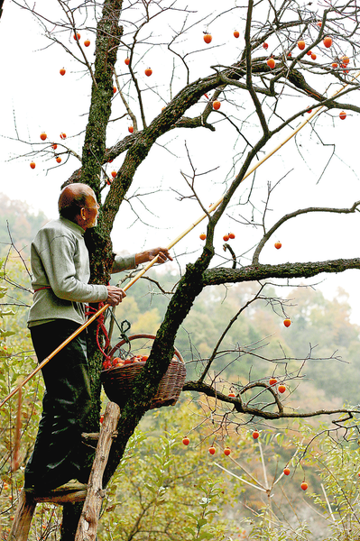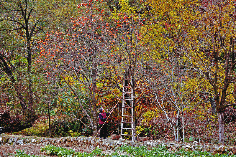 村民采摘柿子