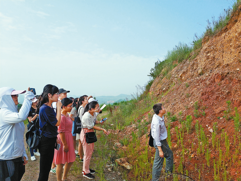 張孝存教授在商州區(qū)江山景區(qū)指導(dǎo)學(xué)生觀察腰市盆地邊緣的河湖相沉積特征