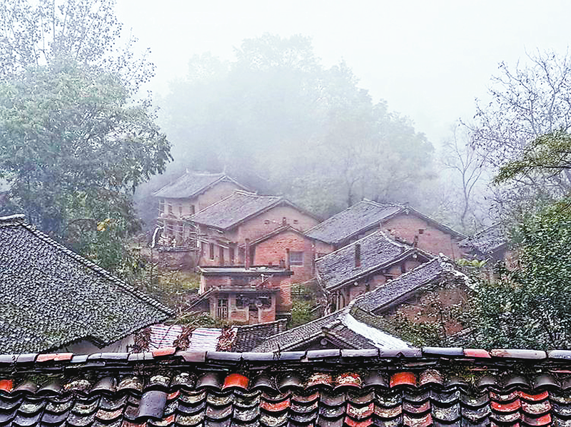 帶著這個(gè)心愿,2021年深秋的一天,我來到商州區(qū)板橋鎮(zhèn)兩岔河村,開始了楊山之旅。蒙蒙細(xì)雨中,一行人沿著“之”字形的水泥路盤旋而上,遠(yuǎn)山云霧繚繞,柿子艷紅似火,一團(tuán)云霧飄來,仿佛將我們帶進(jìn)了仙境里。