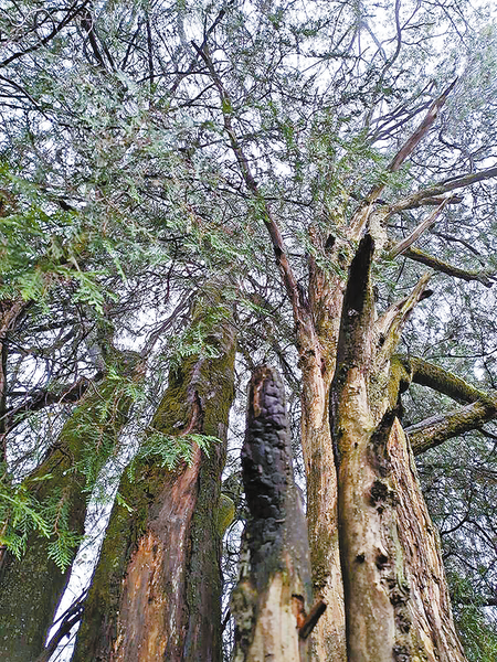 歷經(jīng)煙熏火燎仍蒼勁挺拔的古柏