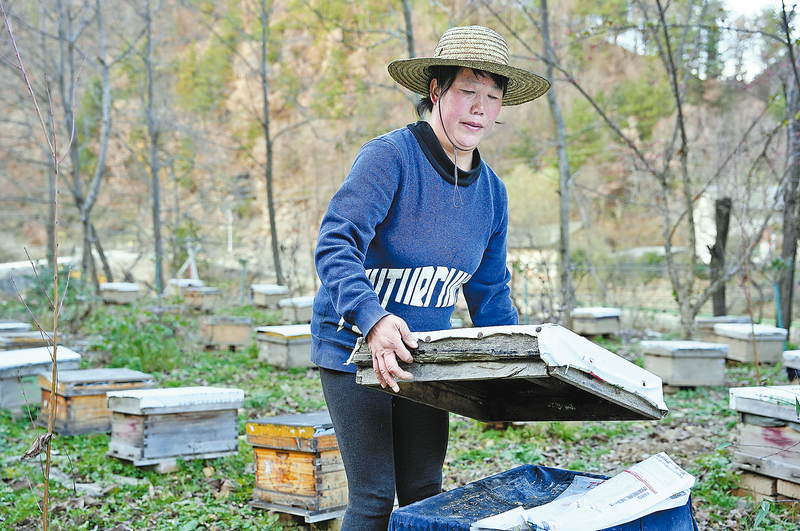 初冬,養(yǎng)蜂人家門前整齊排列的蜂箱成了村子一道獨(dú)特的風(fēng)景線。