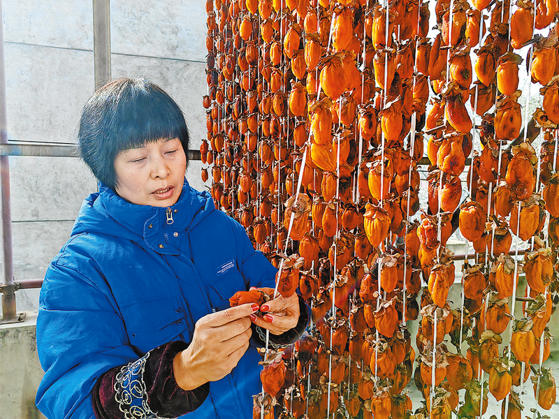 “今年霜降后氣溫還降不下去,加之還下了幾場雨,把我急得沒辦法,只好賣了大量鮮柿子,減少了加工柿餅的量,往年最多時(shí)我要做兩萬多斤柿餅?zāi)?”張世珍看著院子里吊著的柿餅無奈地說。