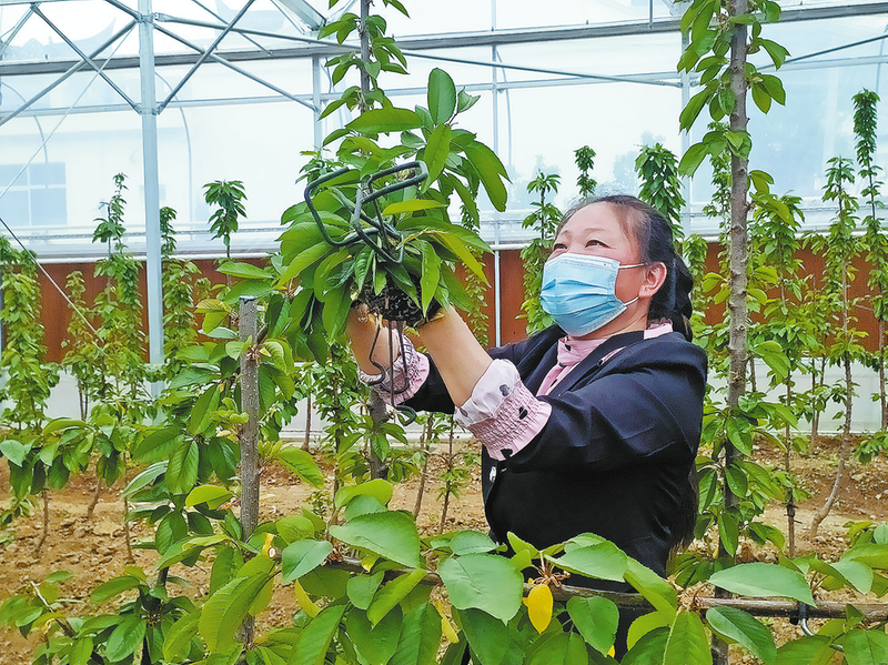技術(shù)員在大棚開(kāi)展櫻桃科管