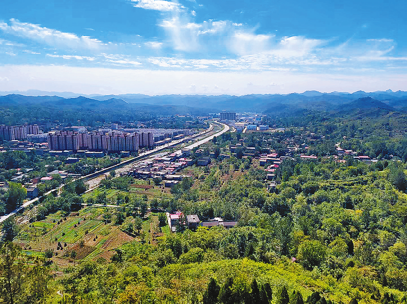 收回放飛的思緒,走出殿門,發(fā)現(xiàn)自己還在高山之巔。藍天白云下,大荊川、清明河一覽無余,白墻紅瓦的村落錯落在綠蔭之中。從古到今,商州北鄉(xiāng)的清明會年年在這里舉辦,熱鬧三天。