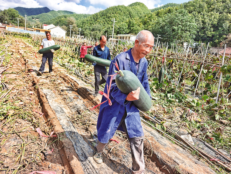 說話間,又一輛卡車駛進(jìn)基地。胡小剛擦了擦汗,再次加入裝車隊伍。陽光下,滿架的冬瓜、忙碌的身影、即將啟程的貨車,共同勾勒出一幅豐收增收的美好圖景。