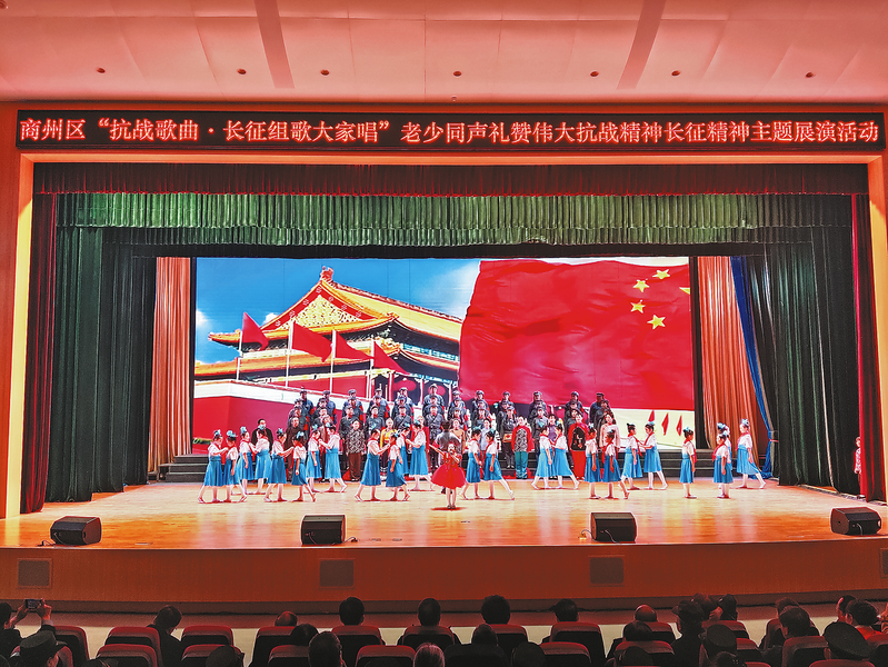 10月26日,商州區(qū)“抗戰(zhàn)歌曲·長征組歌大家唱”主題展演活動在商州區(qū)高級中學(xué)舉行。活動現(xiàn)場,老少群眾同臺高歌,以激昂的紅色經(jīng)典歌曲謳歌偉大抗戰(zhàn)精神和長征精神,傳承紅色基因,凝聚奮進力量。 (本報記者 馬澤平 攝)