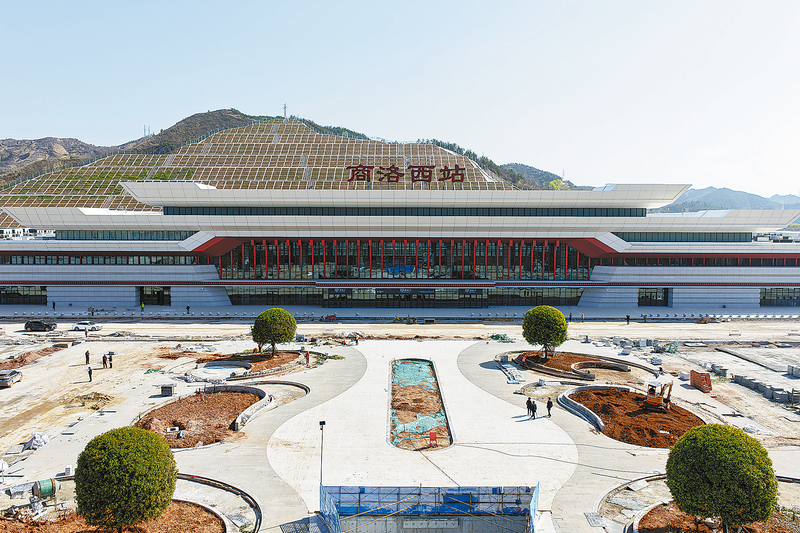 走進高鐵新城建設現(xiàn)場,整體造型取自“商”字的商洛西站格外醒目:以層疊退臺的飛檐為骨架,米白色石材搭配朱紅色線條勾勒輪廓,處處彰顯秦嶺南麓地域文化特色。站前廣場上,挖掘機、運輸車往來穿梭,切割機火花四濺,搶工期、趕進度的熱潮撲面而來。這片曾經的山坡荒地,正加速蛻變?yōu)樯讨莠F(xiàn)代化新城的門戶。