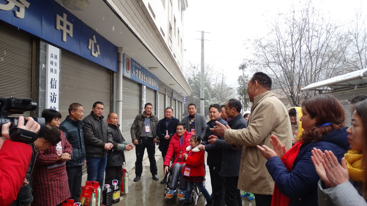 1月31日,深冬的一場雪鋪滿大地,料峭寒風中,“愛心大使”馬華帶領(lǐng)愛心人士和志愿者們在雪花飄飄的周末來到高峰鎮(zhèn),為各村的貧困戶們送來了春節(jié)的慰問品。