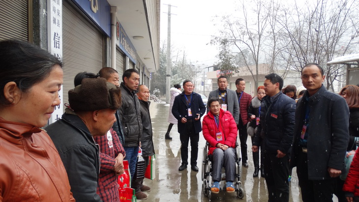 1月31日,在紛紛揚(yáng)揚(yáng)的大雪中,縣“愛心大使”馬華攜各成功企業(yè)、愛心人士和志愿者們驅(qū)車40余里來到高峰鎮(zhèn)看望困難群眾,為他們送去慰問禮品和新春祝福。