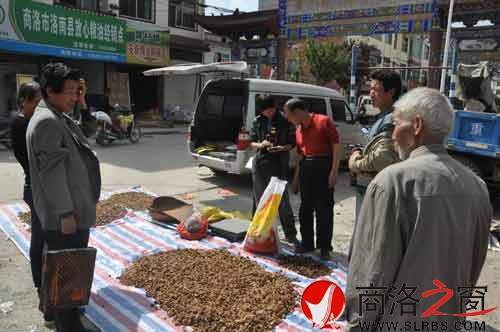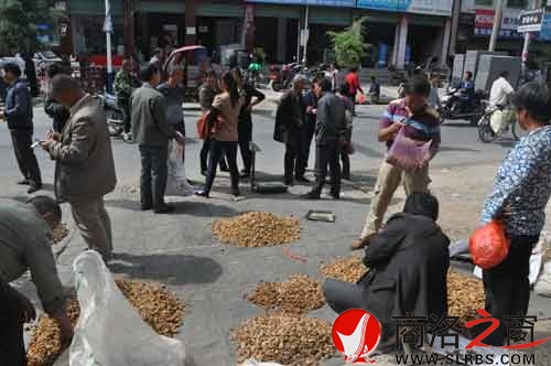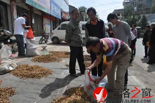 商洛之窗訊(郭夏季樊菊榮)近日,洛南縣景村鎮(zhèn)景村街的核桃銷售集市上,人來(lái)人往,熙熙攘攘,收購(gòu)核桃仁的大小客商滿臉笑容地招徠著顧客,出售核桃仁的農(nóng)民朋友興高采烈地?cái)?shù)著鈔票,集市一派購(gòu)銷兩旺的繁榮景">