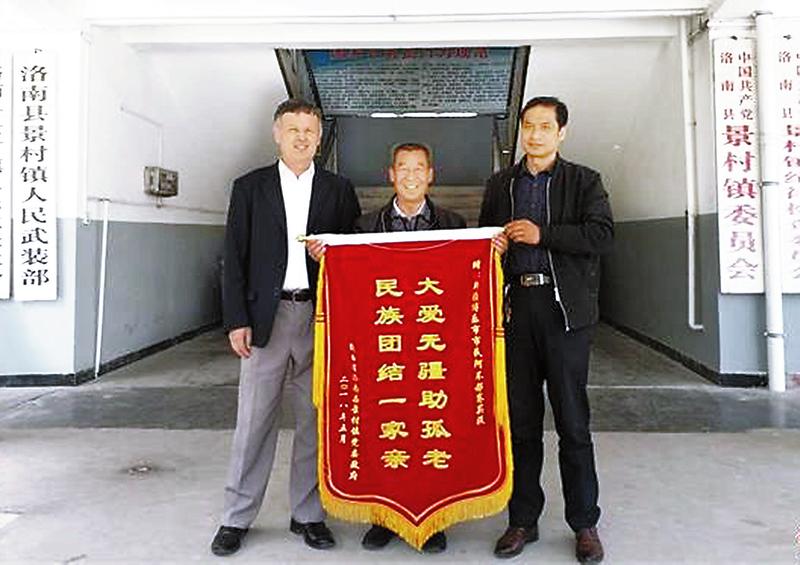 為了感謝阿不都賽買提·依侖巴依對景村人民的熱心幫助,景村鎮(zhèn)黨委、政府和楊坪村村委會分別制作了一面錦旗,贈送給了阿不都賽買提·依侖巴依。錦旗上寫道:“大愛無疆助孤老,民族團結一家親。”這短短的14個字,高度濃縮并概括了阿不都賽買提·依侖巴依助人為樂的善行義舉和人格魅力。