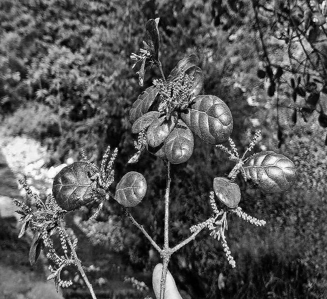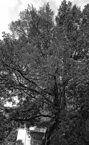這是一簇叢生的灌木狀烏岡櫟,屬于國家一級保護(hù)樹種。整棵樹從根部分為5個主干,基部合起來約4人合圍,1993年就被柞水縣林業(yè)局掛牌為“國家重點保護(hù)樹木”。烏岡櫟是殼斗科櫟屬的常綠喬木,常生于山地巖石上,一般花期在3-4月,果熟期在9-10月。資料記載,它在我國長江流域中下游和南部各省區(qū)生長,北至陜西均有分布。