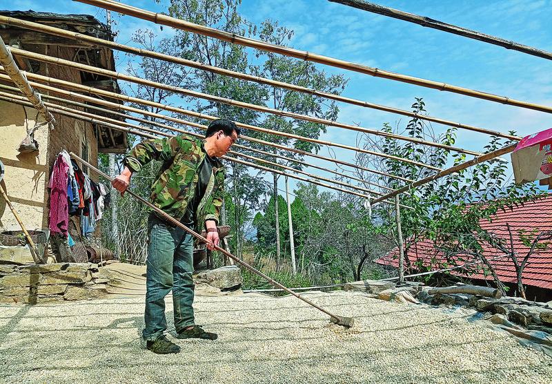 從柳林溝的水泥路進(jìn)去不久,有一條隨山就勢(shì)、蜿蜒而上的機(jī)耕路,可以通到鄧永廷家的老房子。縣上引導(dǎo)扶持搬遷貧困群眾依托原有林山、土地和閑置房屋等資源,鼓勵(lì)大家發(fā)展種養(yǎng)業(yè)。鄧永廷只付了5000元錢,于去年8月搬進(jìn)火石梁安置點(diǎn)48平方米的新房,但為了照顧母親的時(shí)候兼顧種地和養(yǎng)殖,他與母親大部分時(shí)間仍居住在柳林溝的3間老房里。在鄧永廷的精心照顧下,老人頭發(fā)整齊,臉上白凈紅潤(rùn),胸前系著紅格圍裙,穿的衣服很干凈。鄧永廷是老人的小兒子,1980年出生的他還不到40歲,淺淺的皺紋已爬上額頭,粗糙的手掌上遍布老繭,衣著樸素,但面容顯得沉穩(wěn)而又堅(jiān)毅。“出事時(shí)我媽已經(jīng)快70歲了,只有保守治療。醫(yī)生估計(jì)我媽只能活一兩年,但只要她活一天,我就會(huì)好好照顧一天。”他細(xì)心地擦拭著母親流出的口水。