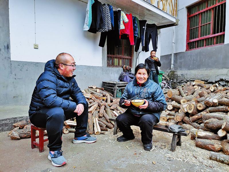 2018年冬季的一天,駐村工作隊(duì)一大早便入戶檢查全村的安全飲水問題。大家跑完了坡上的十幾戶人家,已到日落時分,都已疲憊不堪,但最偏遠(yuǎn)的住在山頂?shù)闹芰ω?cái)家還沒有去,一個來回要走20里路。張樂讓大家先回去休息,自己堅(jiān)持上山走訪完最后一家。見周力財(cái)家飲水安全達(dá)標(biāo),他終于放下了心,于是盤腿坐炕、端碗喝水、遞煙點(diǎn)火,詢問起他家種植的魔芋和板栗,親熱得像兄弟倆。聽到周力財(cái)說他家剛魔芋就賣了5萬塊錢,張樂又叮囑他抓緊給板栗樹進(jìn)行科管。等張樂回到村上,已是晚上11點(diǎn)了。