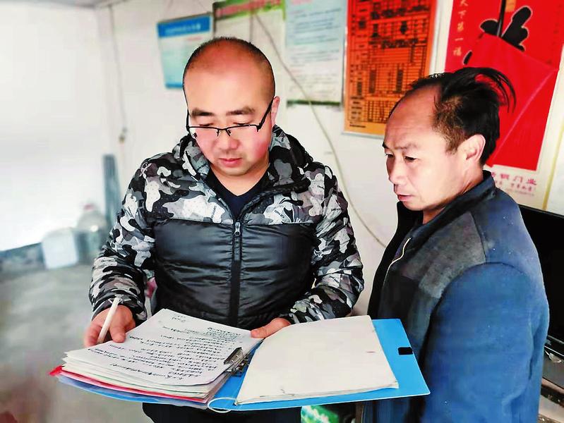 張樂在五組貧困戶毛易友家核實(shí)產(chǎn)業(yè)收入,為下一步發(fā)展做好計(jì)劃。