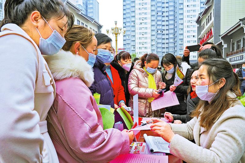 2月26日,丹鳳縣在鳳冠新城易地安置小區(qū)舉辦2021年“春風行動”縣域內(nèi)重點企業(yè)用工專場招聘會,26家企業(yè)和8家人力資源公司提供縣內(nèi)就業(yè)崗位2800個、縣外就業(yè)崗位6000個,現(xiàn)場達成就業(yè)意向106個。 (王玉虎 攝)