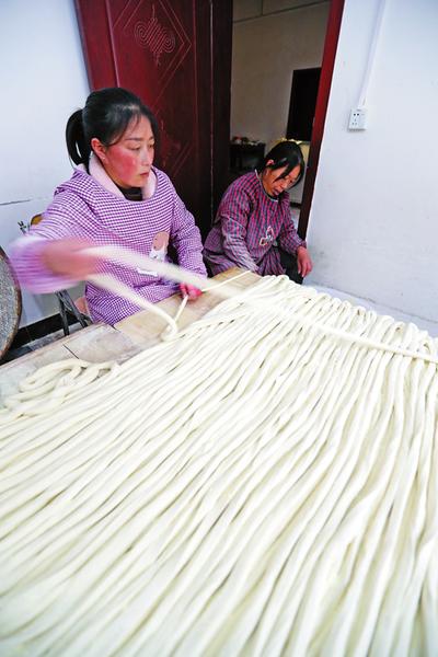 記者了解到,這兩戶人家不但掛面做得好,也十分注重品牌意識(shí)。他們將掛面分成不同類型進(jìn)行包裝,再裝進(jìn)統(tǒng)一制作的禮盒內(nèi)推銷,不但提升了手工掛面的“顏值”,也有效提高了銷量。制作手工掛面工序復(fù)雜,他們每天十分辛苦,晚上往往只能休息四五個(gè)小時(shí),但是制作傳統(tǒng)手工掛面是這兩戶人的主導(dǎo)產(chǎn)業(yè),也是他們邁上小康生活的希望。
