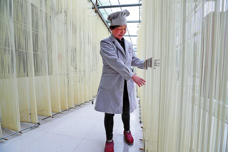 艾萬(wàn)玉檢查掛面質(zhì)量