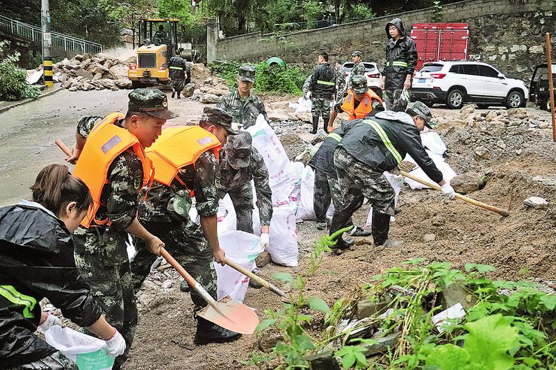 18時37分,接到搶險救援任務后,武警商洛支隊第一時間將情況上報總隊,并按照“三種情況第一時間到現(xiàn)場”要求,派該支隊某部教導員俎強帶領10多名兵力,攜帶救生衣、救援繩等裝備器材,采取摩托化和徒步相結合的方式向青山溝村機動開進。