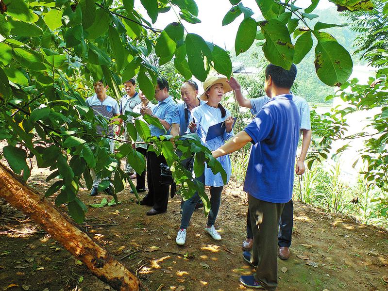 省林木種苗審定委員會(huì)專家在現(xiàn)場審定“鎮(zhèn)核1號(hào)”良種核桃