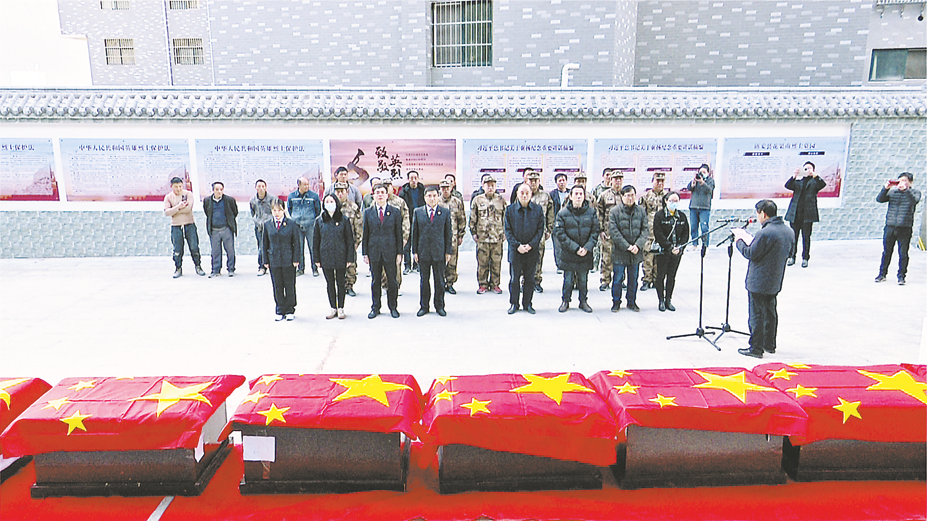 據(jù)了解,此次集中安葬的8位烈士,有5位是無(wú)名烈士。他們有的在農(nóng)村土地改革中挺身而出,有的在國(guó)共戰(zhàn)爭(zhēng)中浴血奮戰(zhàn),有的在執(zhí)行任務(wù)中英勇?tīng)奚?hellip;…烈士的事跡感人至深,他們用英雄壯舉展示了崇高品格,用寶貴青春詮釋了生命的意義,用犧牲書(shū)寫(xiě)了忠誠(chéng)與擔(dān)當(dāng)。