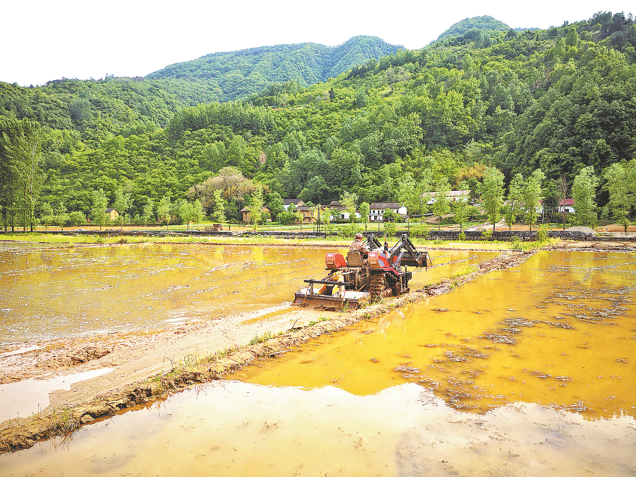在西川村,盧錫金流轉(zhuǎn)土地200多畝,發(fā)展優(yōu)質(zhì)油菜和水稻產(chǎn)業(yè)。目前正是水稻育苗和水田修建階段,整齊劃一的稻田、碧綠的大棚水稻苗,給這個(gè)大山深處的小山村帶來(lái)了一種江南水鄉(xiāng)的感覺(jué)。