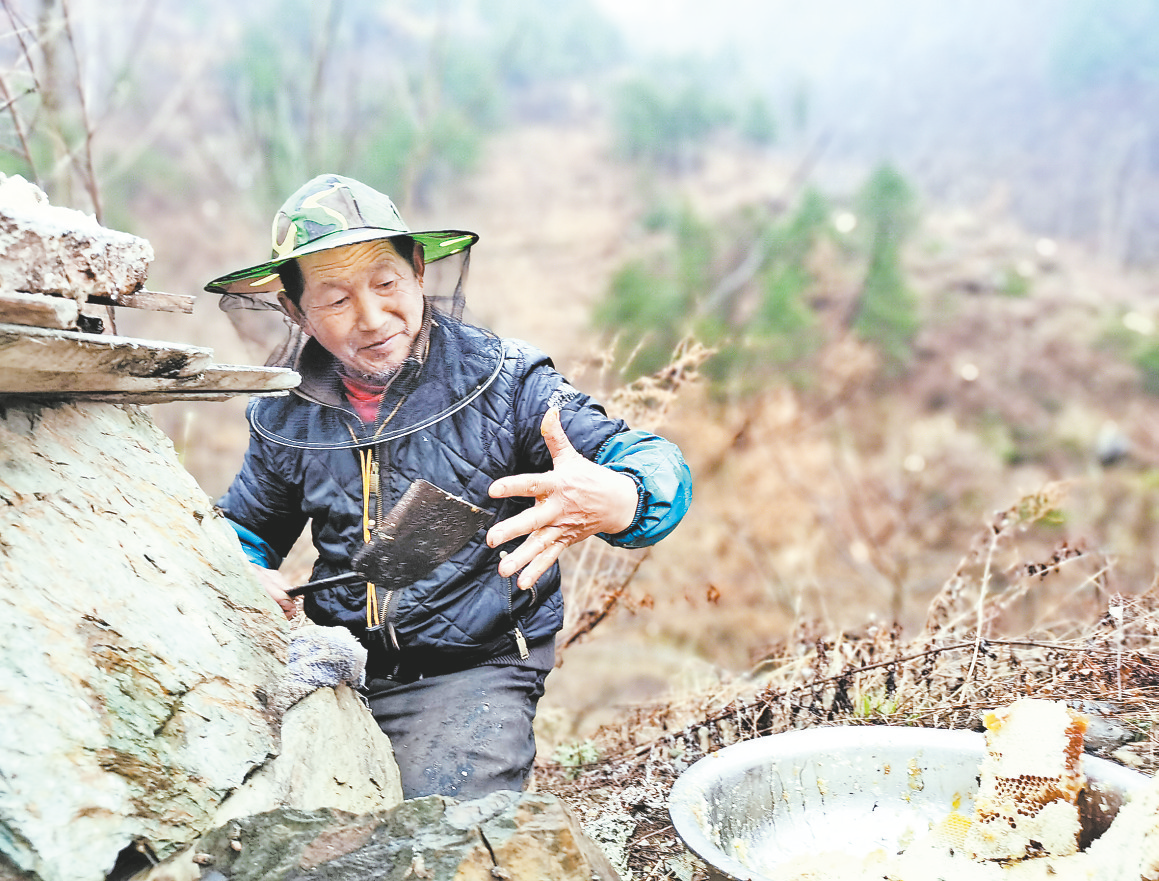 當(dāng)?shù)卮迕穸嗖捎霉欧鞠漯B(yǎng)蜂技術(shù),將蜂箱散放在野外山間,蜜蜂自由地出入,讓時(shí)間見證奇跡。有的蜂農(nóng)干脆把樹干做成的蜂桶放到深山里,讓蜜蜂自己筑巢、自己釀蜜。勤勞的人都懂得,甜蜜的回饋必須用時(shí)間來交換。