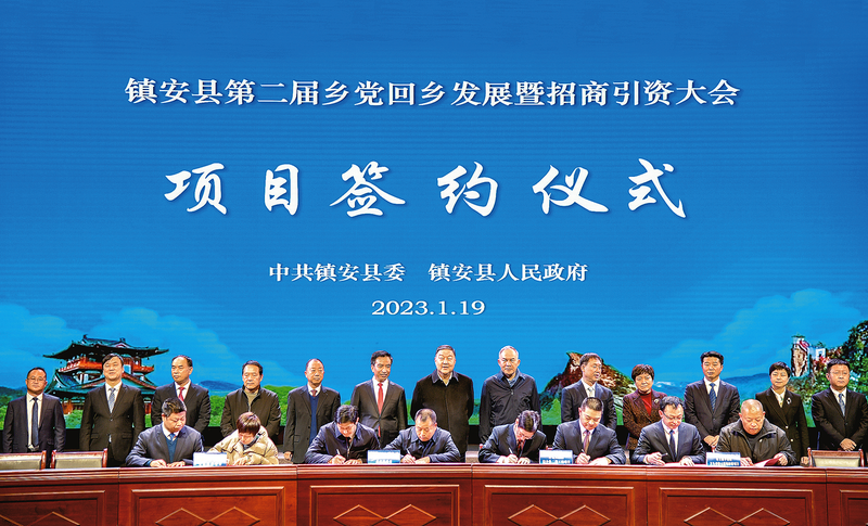 鎮(zhèn)安縣第二屆鄉(xiāng)黨回鄉(xiāng)發(fā)展暨招商引資大會項(xiàng)目簽約儀式