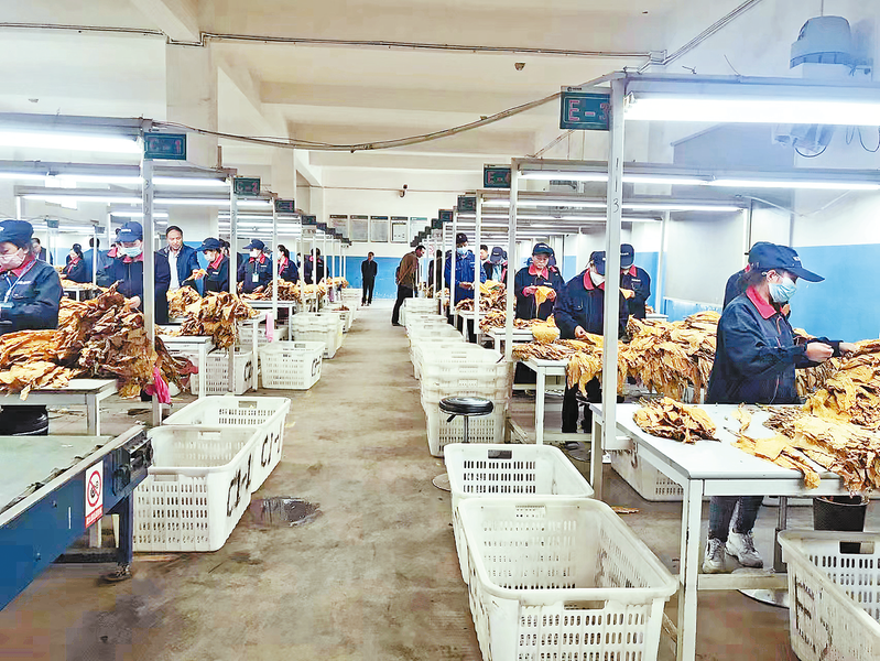 青銅關(guān)梅花煙站職工在進(jìn)行烤煙分級