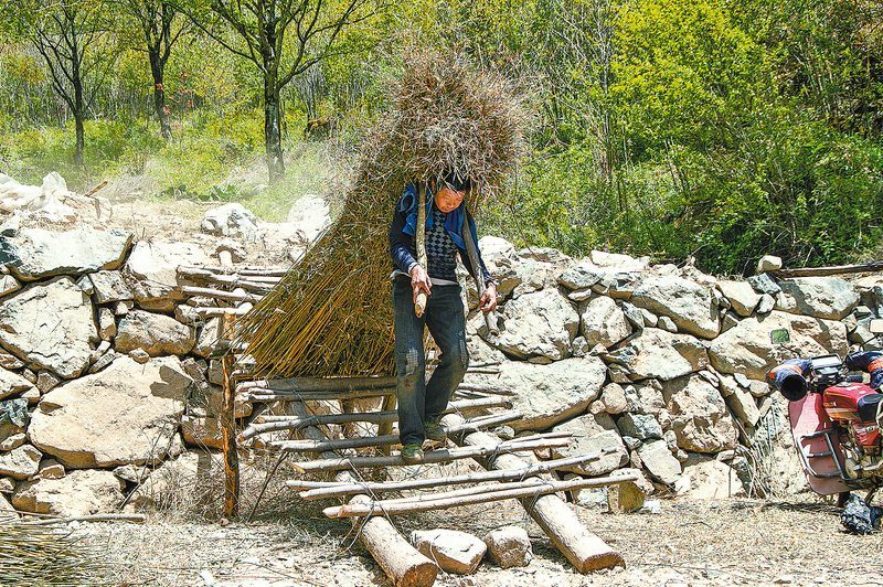 一路上和風(fēng)徐徐,滿目青翠。20多個(gè)民工在山上割苦竹,有的來(lái)自本縣,有的來(lái)自鄰縣,在這里集體吃住,男的砍、拉,女的在營(yíng)地做飯。他們把割下的苦竹交給老板,老板再拉到西安賣(mài)給菜農(nóng)。