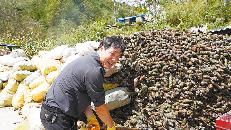 劉由成今年新購(gòu)置了脫粒機(jī),將收購(gòu)來(lái)的松塔直接加工成松子再外銷,不僅提升了產(chǎn)品附加值,還增加了利潤(rùn),也極大地降低了運(yùn)輸成本。僅靠收購(gòu)、加工松塔這一項(xiàng),他和妻子一年的收入就達(dá)10多萬(wàn)元。