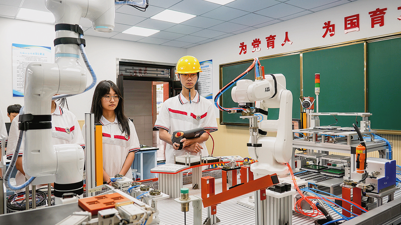 鎮(zhèn)安縣職教中心學生正在學習機械自動化生產(chǎn)操作。