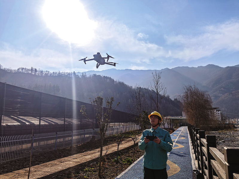 姚舜禹將無人機(jī)升空,準(zhǔn)備對(duì)10kV132大坪線開展智能巡查。