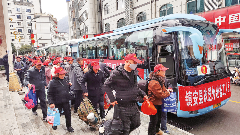 務(wù)工群眾有序搭乘“點(diǎn)對(duì)點(diǎn)”送工專車。