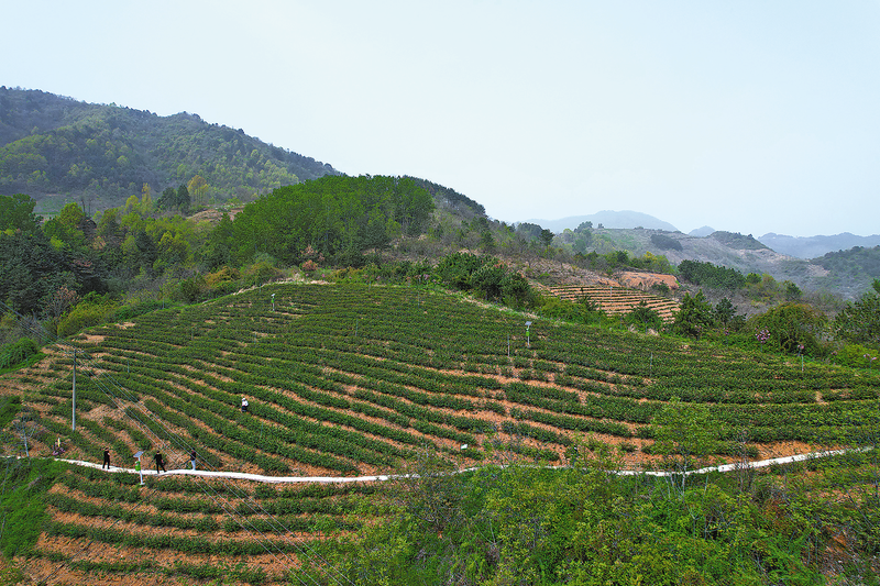 在和暖的春風(fēng)中,陣陣茶香沁潤(rùn)心頭,連片的白茶、龍井、金萱等茶樹(shù)從山腳綿延至山頂,昔日荒山變成了如今的青山,成為當(dāng)?shù)厝罕娫鍪罩赂坏?ldquo;金山銀山”。