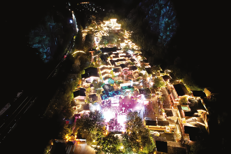夜晚燈光璀璨的柞水縣終南山寨景區(qū)